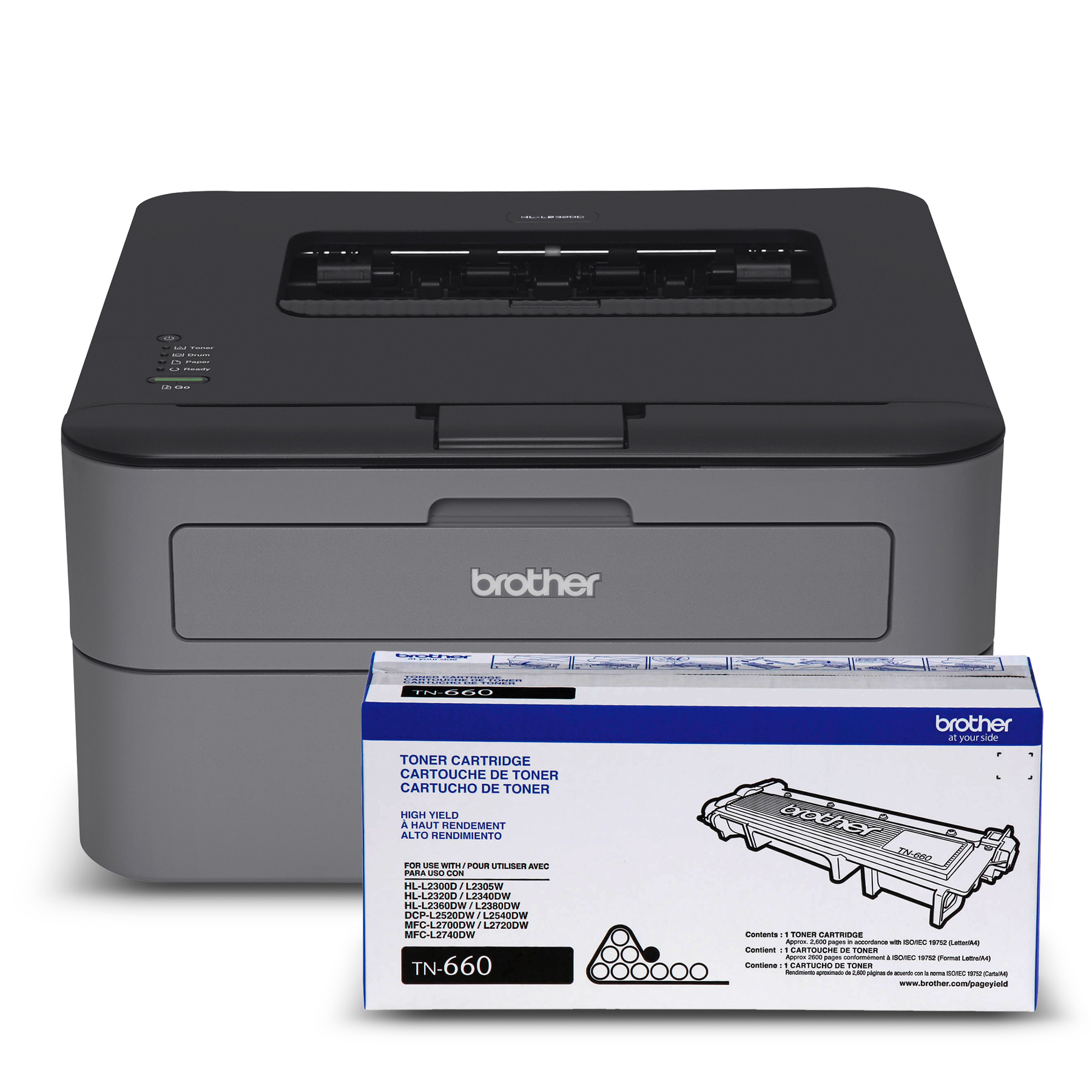 The Brother HL-L2320D Bundle includes a Mono Laser Printer and a TN660 high-yield toner. Auto duplex printing, flexible paper handling, fast mobile device printing and versatile connectivity via the Hi-Speed USB 2.0 interface make it ideal for personal or home office use. (USB cable ... See full description