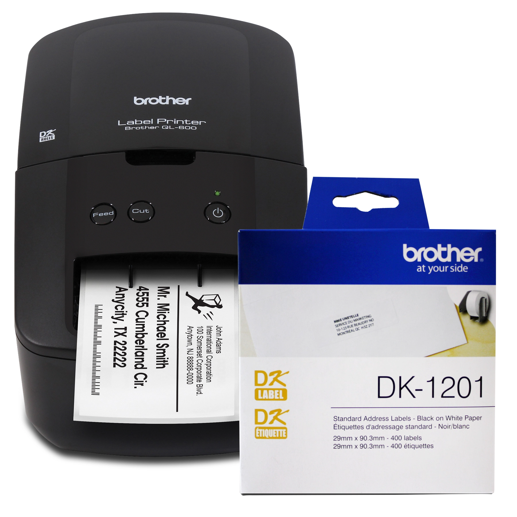 Brother QL600 label printer with DK1201 standard address paper labels bundle