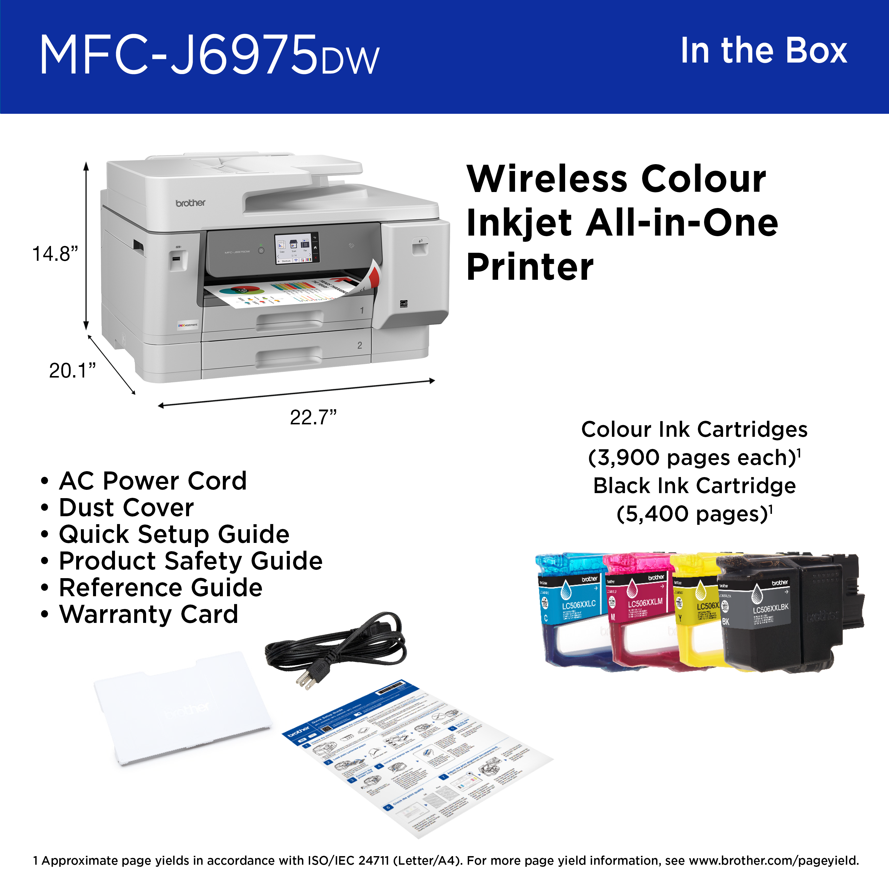 Download Product BrochureBrother MFC-J6975DW Business Colour Inkjet All-in-One Printer with 11” x 17” Print, Copy, Scan, Fax, Low-Cost Printing, and Advanced Security Features