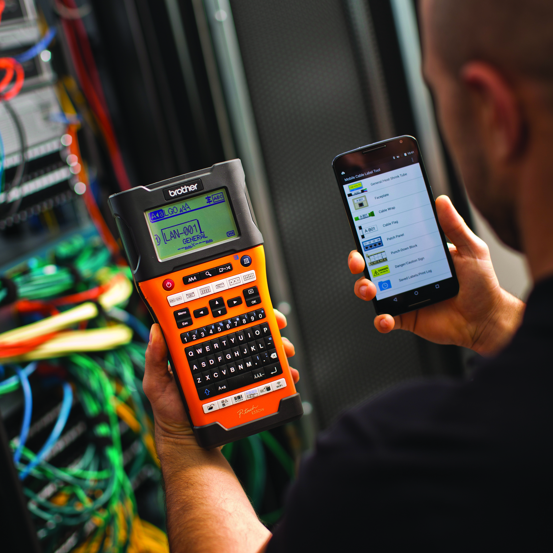 Your professional reputation is on the line with every job you do. Thanks to Brother s PT-E550WP, you can take pride in all of your projects by printing durable labels for electrical or datacom installations. Designed with a QWERTY keyboard, this labeller offers the best in user-friendlness for intuitive data entry. Use the built-in labelling functions or connect to your computer to use the included software for endless design possibilities. An automatic cutter helps you print and cut wider labels up to 24 mm wide with up to 7 lines of text for cable wrapping, cable flagging, faceplates, patch panel, punch block, barcoding, serialization and more. Built-in WiFi® connectivity, Wireless Direct and Brother s free Mobile Cable Label Tool app and the iLink&Label app that works with Fluke Networks LinkWare Live let you turn your smartphone, tablet or laptop into a powerful wireless jobsite labelling partner. A rechargeable Li-ion battery ensures you have a power supply anywhere your job takes you. Comes with a 1-year limited exchange warranty and free online or live chat support for the life of the product.