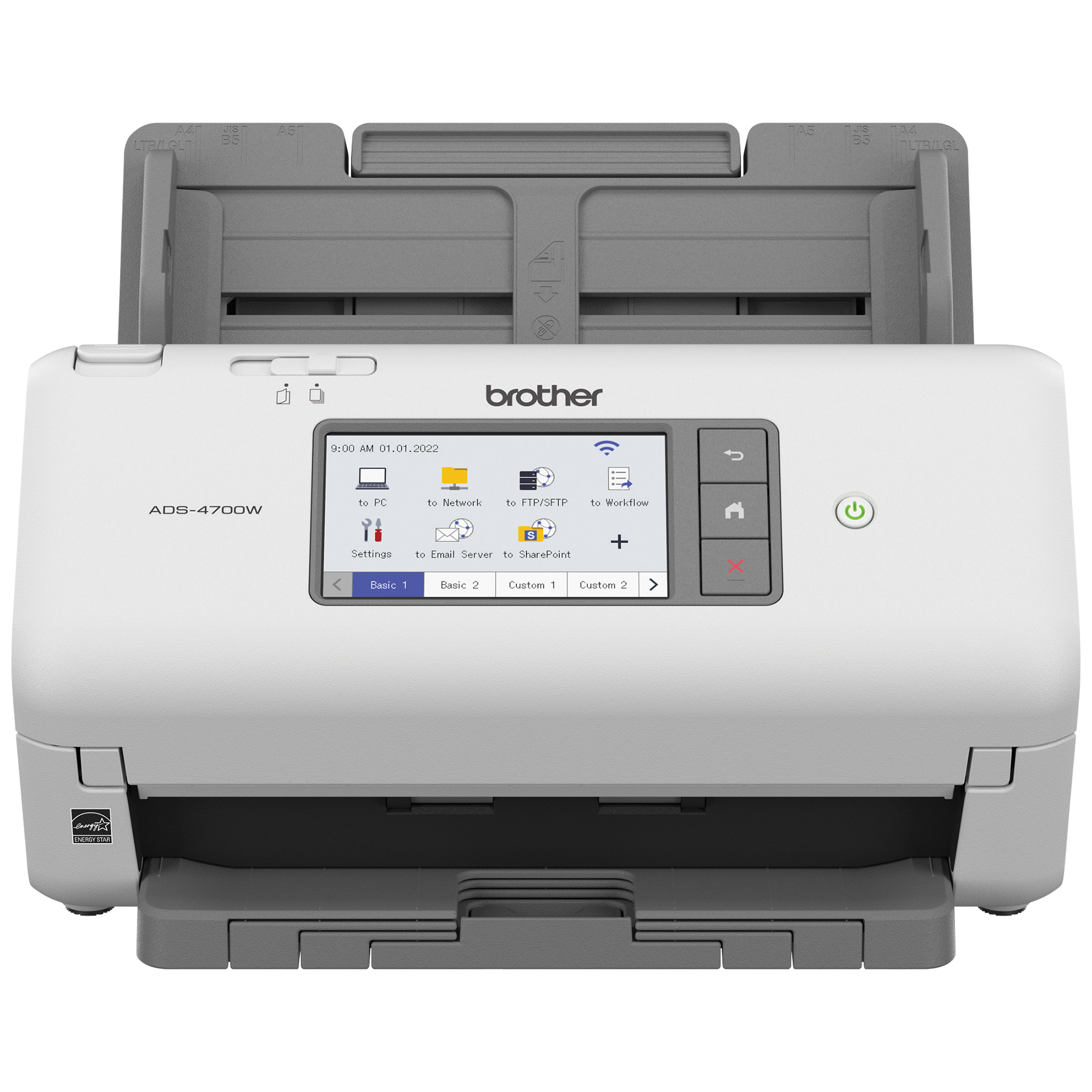 The Brother ADS-4700W Professional Desktop Scanner is an essential component of an optimized fleet for the way work now works providing easy integration with existing workflows, versatile scan-to destinations, and improved productivity. Equipped with fast, two-sided scanning up to 40 ppm to help maximize workgroup productivity it also quickly scans stacks of paper with various sizes and weights via the 80-page capacity auto document feeder to help maximize efficiency and productivity. The 4.3 colour touchscreen display offers easy menu navigation and the ability to create up to 56 customizable shortcuts for one-touch scanning to multiple destinations and scan job preview. Offering Triple Layer Security features, it helps limit document and device access and protects against network intrusions. Wide driver support (TWAIN, WIA, ISIS, and SANE) makes this machine compatible with existing software applications and document management systems. For easy collaboration, it scans to a variety of cloud applications including Google Drive , Dropbox, and OneDrive, as well as email, SharePoint, SSH Server (SFTP), USB memory stick, and more. It's also equipped with a powerful bundled software suite to create, edit, and convert scanned documents into a wide variety of file formats including Searchable PDFs, Secure PDFs, Word, Excel, and PowerPoint. Maximize output quality with integrated image optimization features, such as Auto Deskew, Auto Image Rotation, and Bleedthrough Removal. Featuring built-in wireless and Ethernet network interfaces, you can easily set up and share on your network. Ideal for busy offices and workgroups, scan-to your mobile device with AirPrint and Brother Mobile Connect. The ADS-4700W is also ENERGY STAR compliant and EPEAT Silver rated, making it an energy-efficient choice for your document capture needs. Includes a 1-year standard limited warranty for peace of mind, and free online or live chat technical assistance for the life of your product.