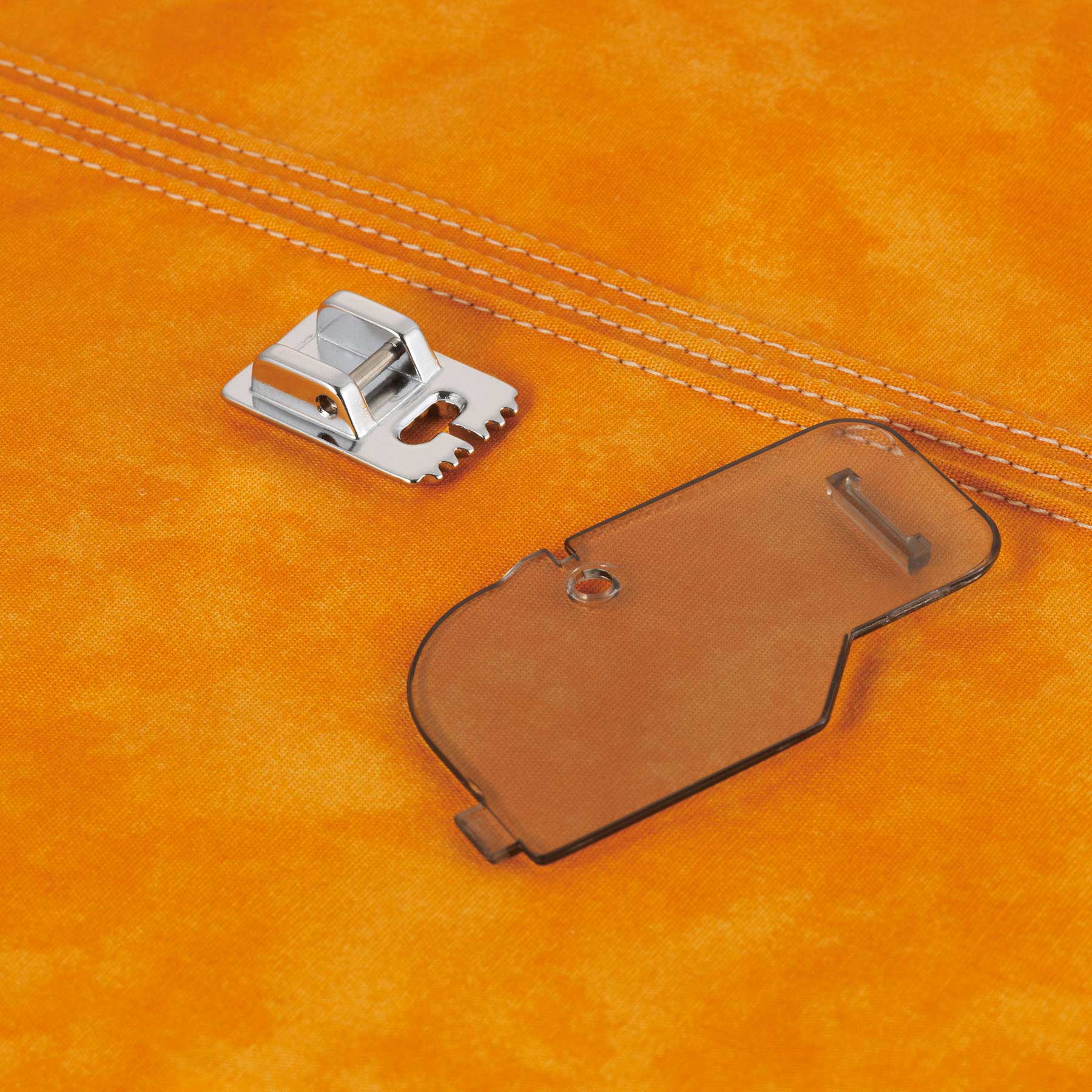 Genuine Brother® Accessory. Sews corded pintucks on garment and home decorating projects. Pintuck foot for 5mm feed dog width. Secure up to 5 threads, vary pin tuck width by moving threads in grooves. 5 grooves on sole plate for precise formation of pintucks.