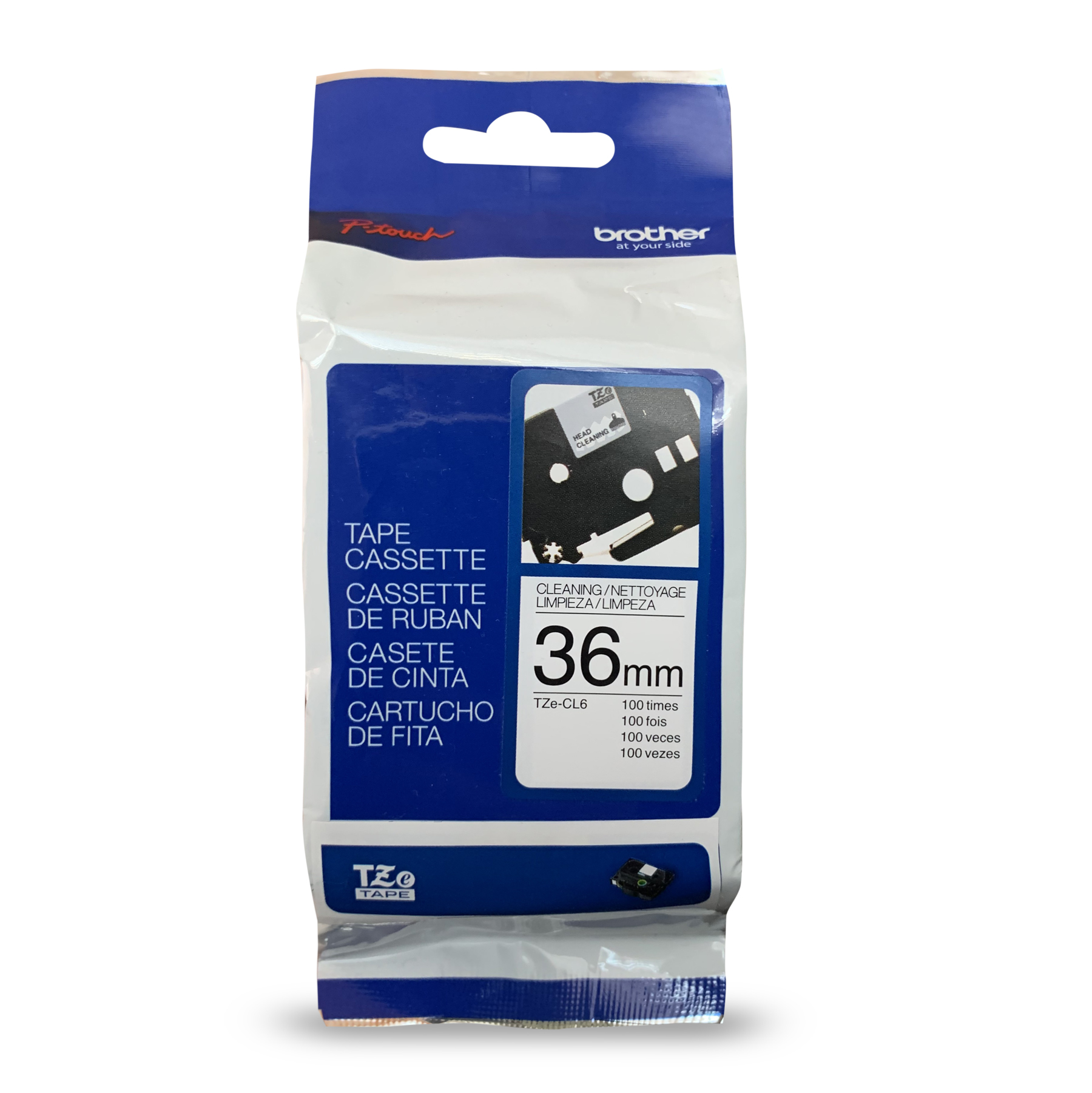 Brother Genuine TZe-CL6 36 mm cleaning tape is designed for use with P-touch label makers. Good for about 100 uses, this dry cleaning tape will clean the print heads of your Brother P-touch label maker to keep it running at optimal performance. Designed with user-friendliness in mind, its drop-in cartridge makes it quick and easy to clean your label maker whenever you need.