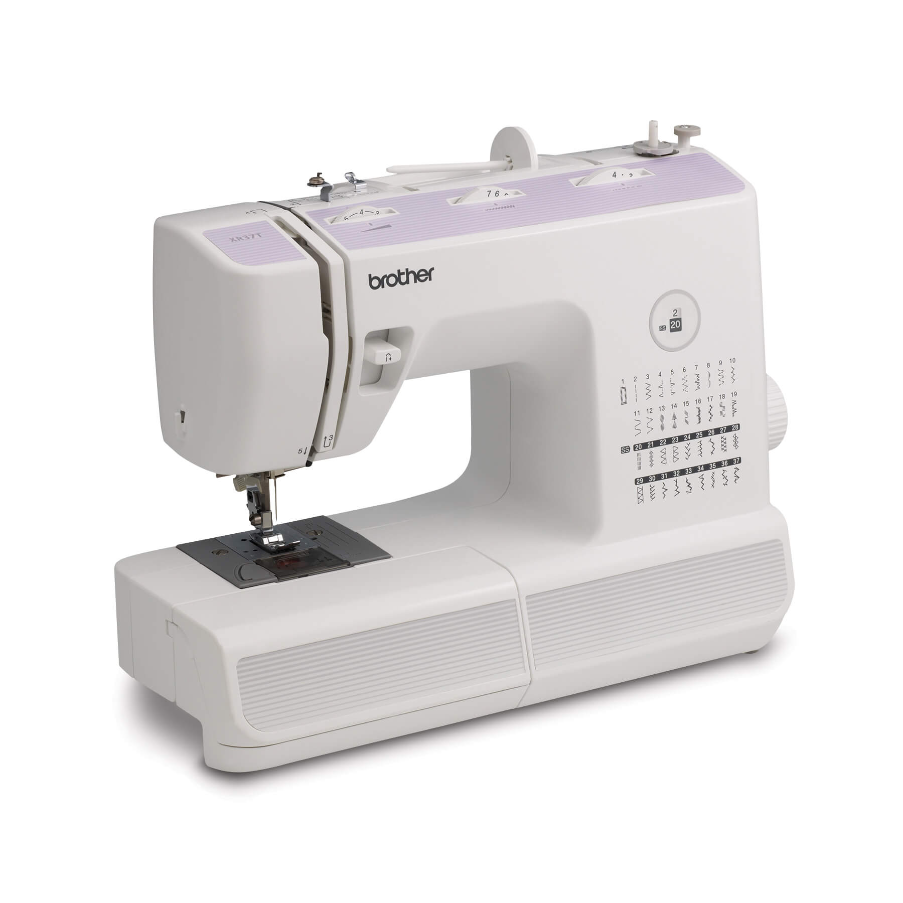 Add style to your wardrobe and strut your creative stuff with the XR37T sewing and quilting machine from Brother . With features such as a built-in buttonhole, a wide variety of built-in stitches, built-in threading system and much more, this machine belongs in the sewing room of every quilter and seamstress! The Quick-Set bobbin, easy stitch selector and included free arm make this machine a durable and reliable choice. All of these features simply make sewing and quilting more enjoyable. This machine was developed with one purpose - to bring out the sewing star in you.