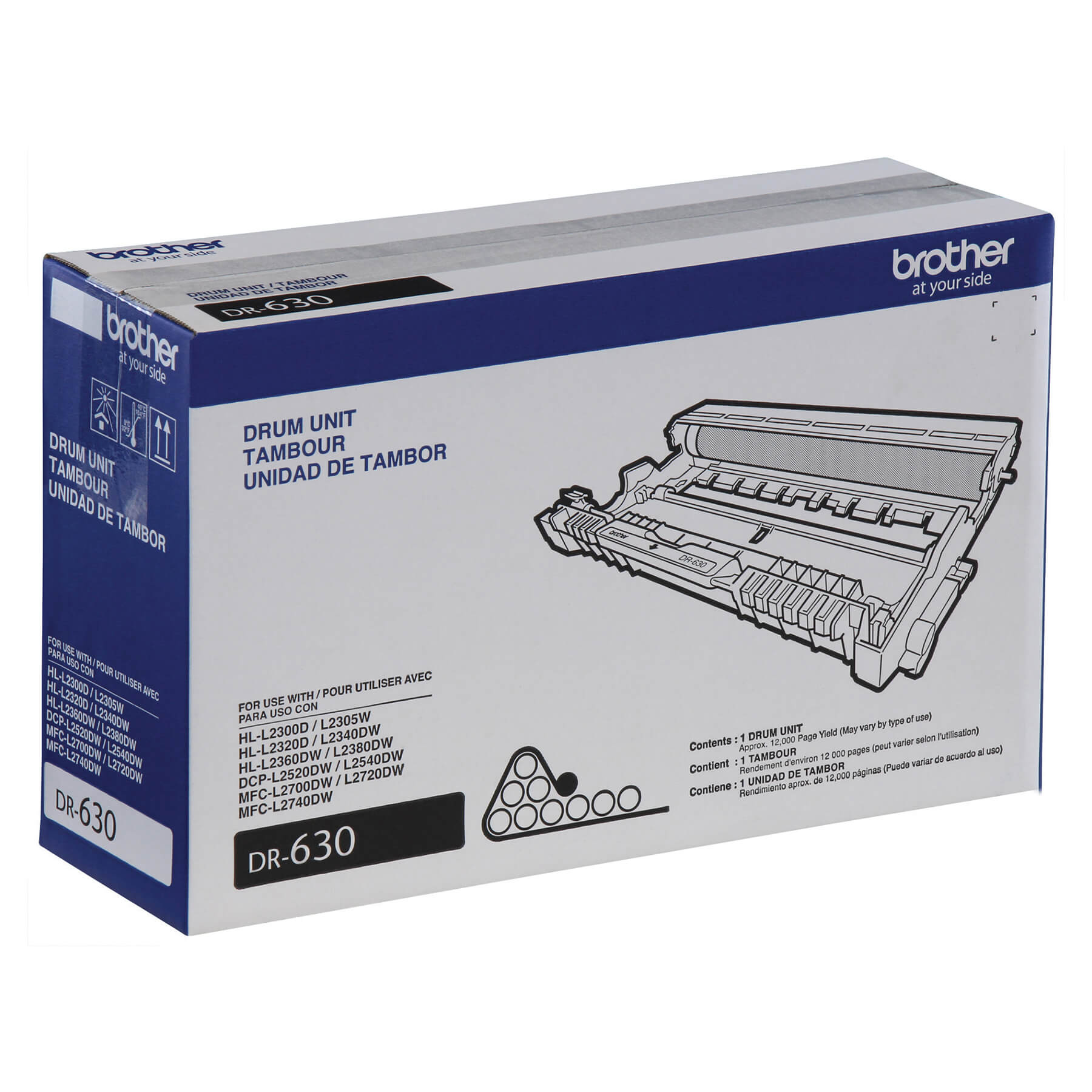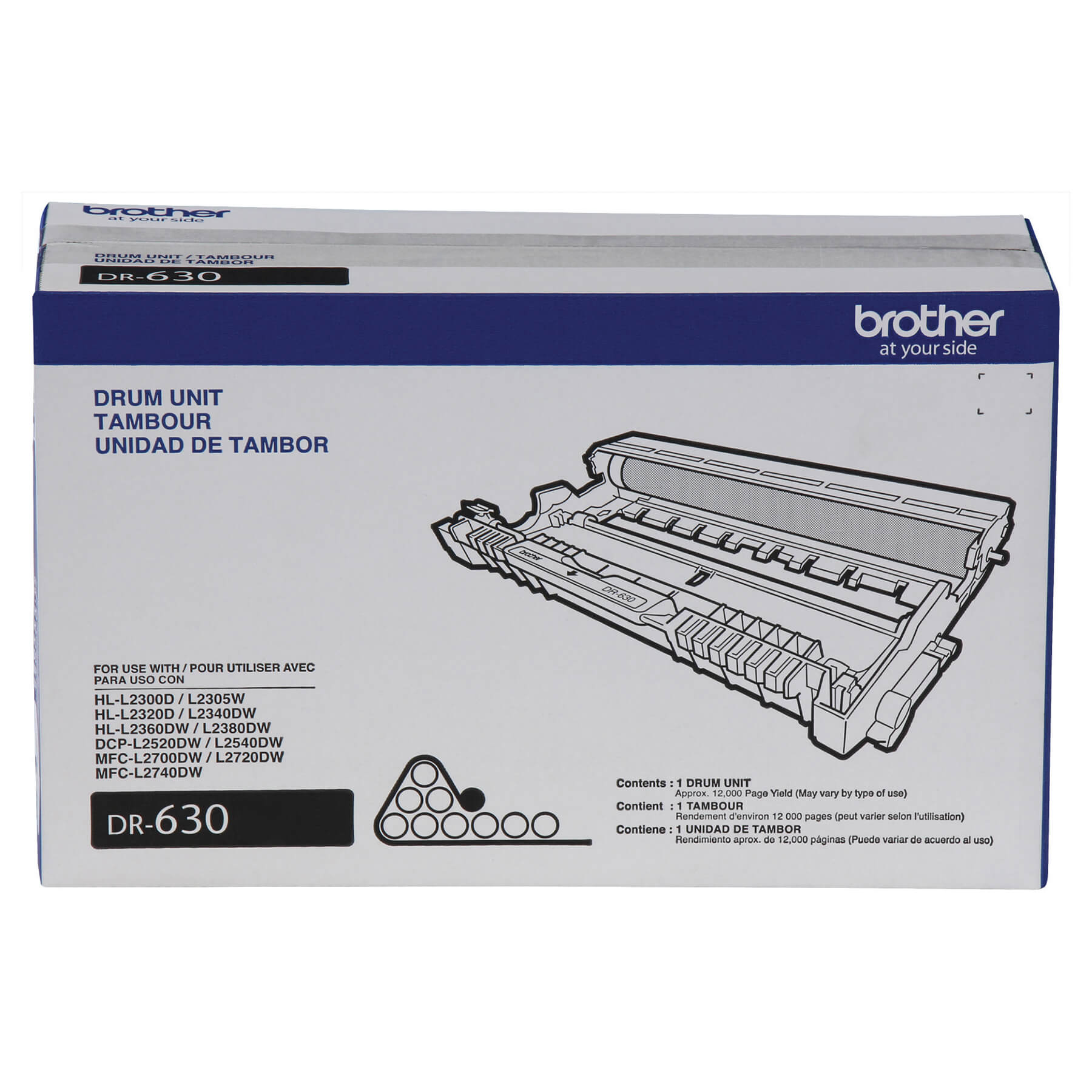 D'une qualité supérieure et d'une fiabilité exceptionnelle, l'unité de tambour DR630 authentique de Brother offre une impression professionnelle aux couleurs riches et éclatantes avec un rendement moyen de 12 000 pages. Intelligemment conçues pour fonctionner de façon transparente avec votre imprimante Brother, le fait d'utiliser uniquement des unités de tambour authentiques de Brother garantira un rendement constant qui résistera à l'épreuve du temps. Visitez le www.brother.ca/fr/environment pour plus d'information sur la façon qu'offre Brother pour que les clients se débarrassent de leurs produits de marque Brother, y compris les unités de tambour en fin de vie, d'une façon respectueuse de l'environnement. Compatible avec les modèles d'imprimantes et de multifonctions Brother suivants : DCP-L2540DW, DCP-L2520DW, HL-L2360DW, HL-L2320D, MFC-L2740DW, MFC-L2700DW, HL-L2380DW.