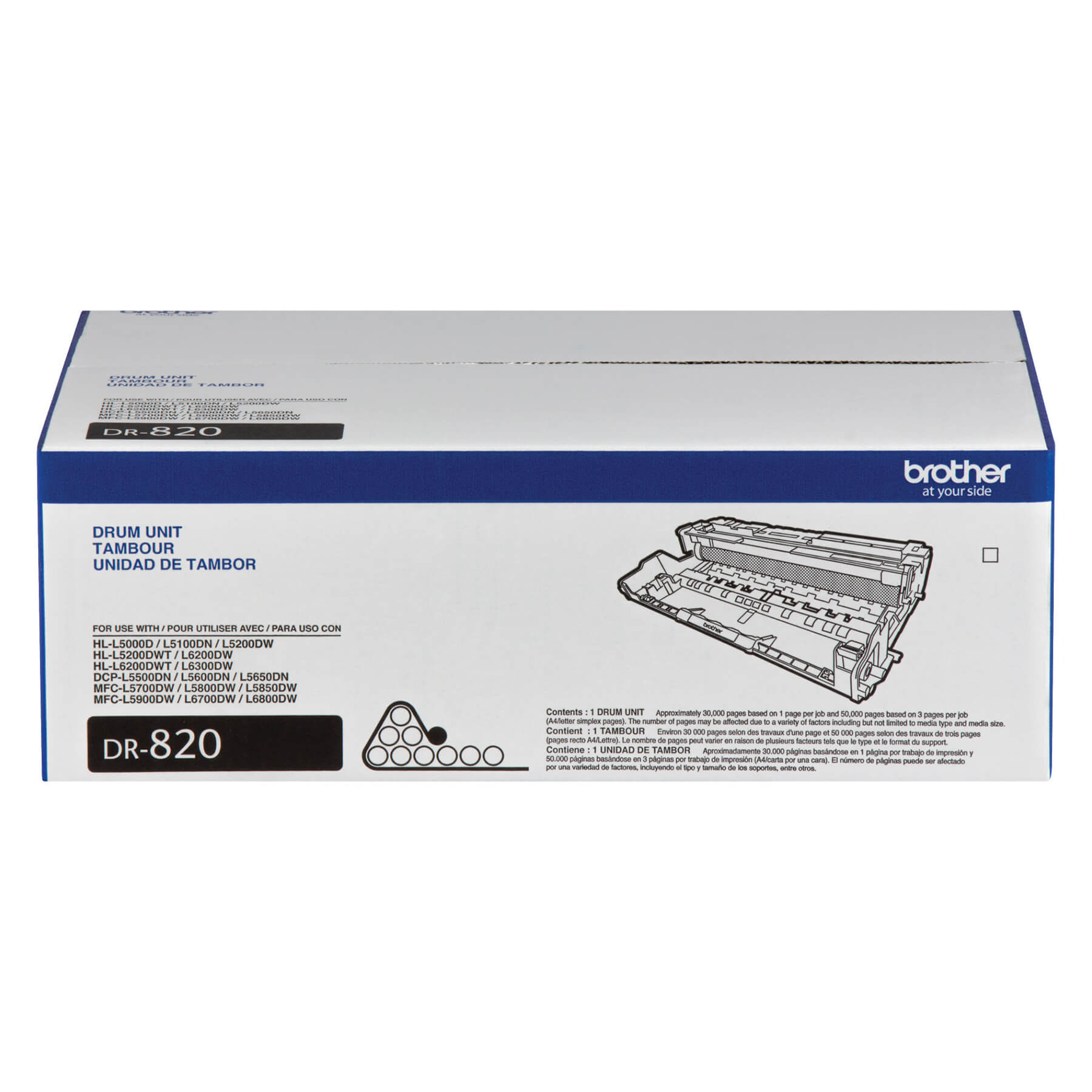 Ce tambour d'imagerie a un rendement pouvant aller jusqu'à 50 000 pages selon des tâches d'impression de trois pages et 30 000 pages selon des tâches d'impression d'une page (pages recto A4/Lettre). Le nombre de pages peut être affecté par divers facteurs, notamment le type et la taille du support.