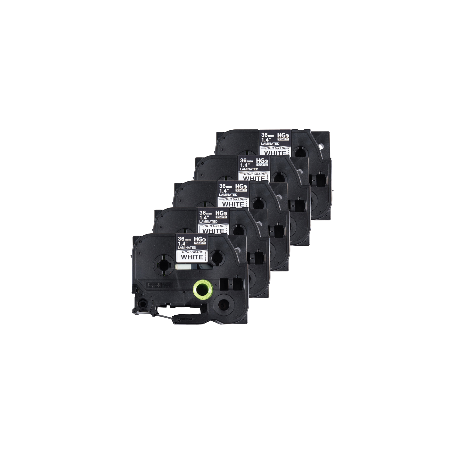Brother HGE2615PK Ruban HGe blanc avec texte noir 36 mm avec adhésif standard 8 m - Ensemble de 5