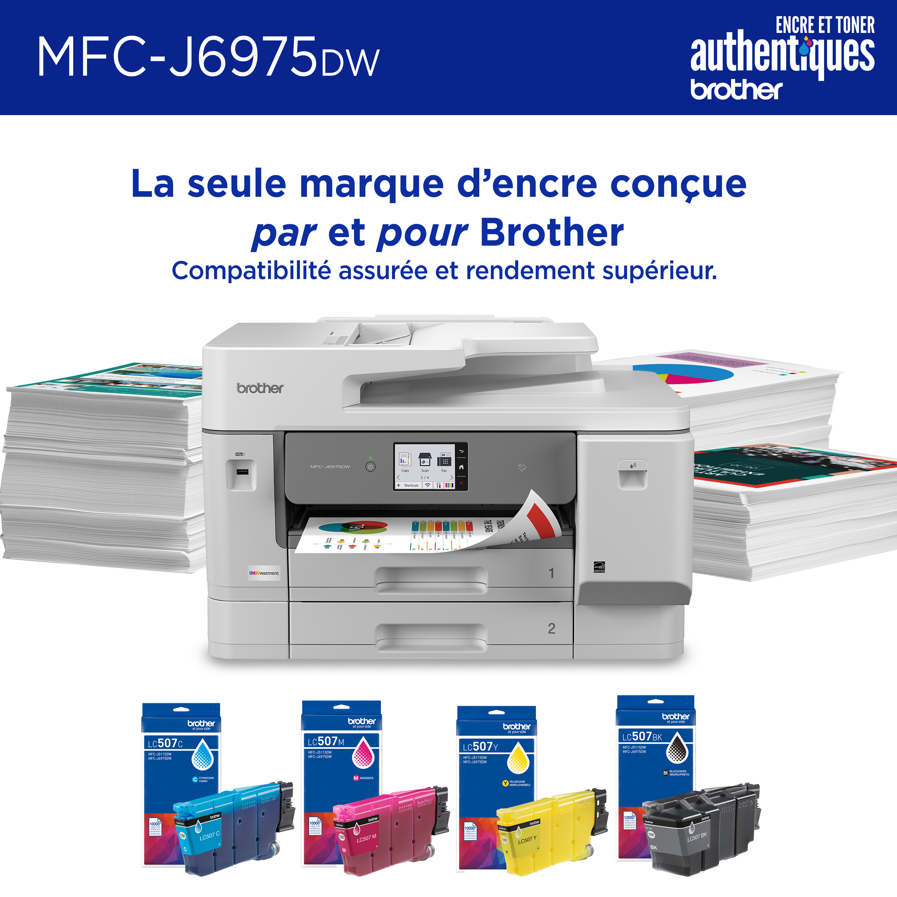 Conçu pour les PME, le MFC-J6975DW de Brother produit des impressions aux couleurs éclatantes comparables au laser. Il offre l’impression, la copie, la numérisation avancée (nuage/mobile) et la télécopie jusqu’au format 11 x 17 po, et des fonctions de sécurité à 3 couches. Voir la description complète du produit