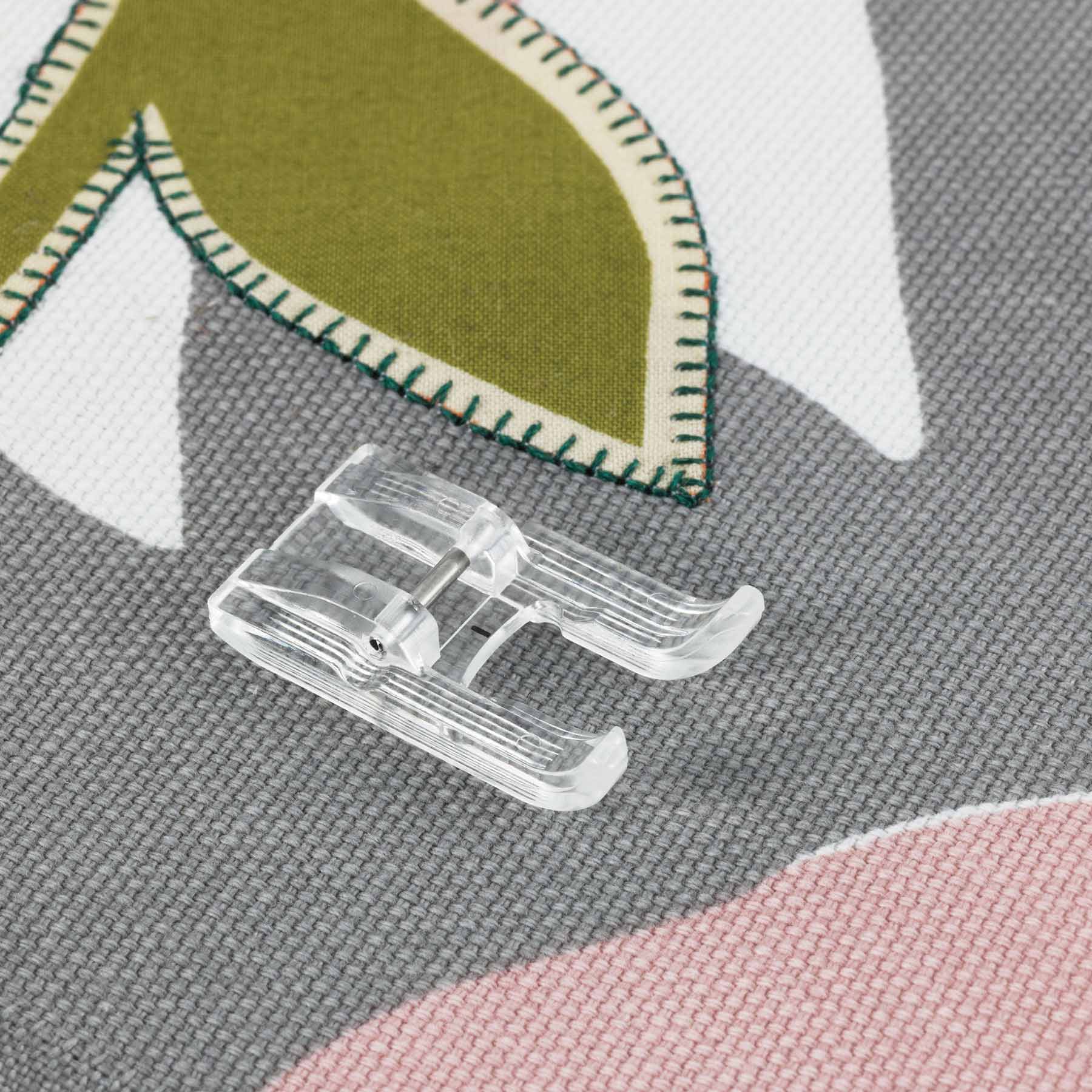 Ce pied ouvert authentique de Brother pour griffes d'entraînement de 7 mm est conçu en plastique transparent pour permettre une visibilité complète des points, coutures et marques de motifs. Son ouverture large est parfaite pour une utilisation avec des points décoratifs et son ouverture horizontale s'adapte à une large gamme de positions d'aiguille de gauche à droite et une pression supplémentaire de la semelle.
