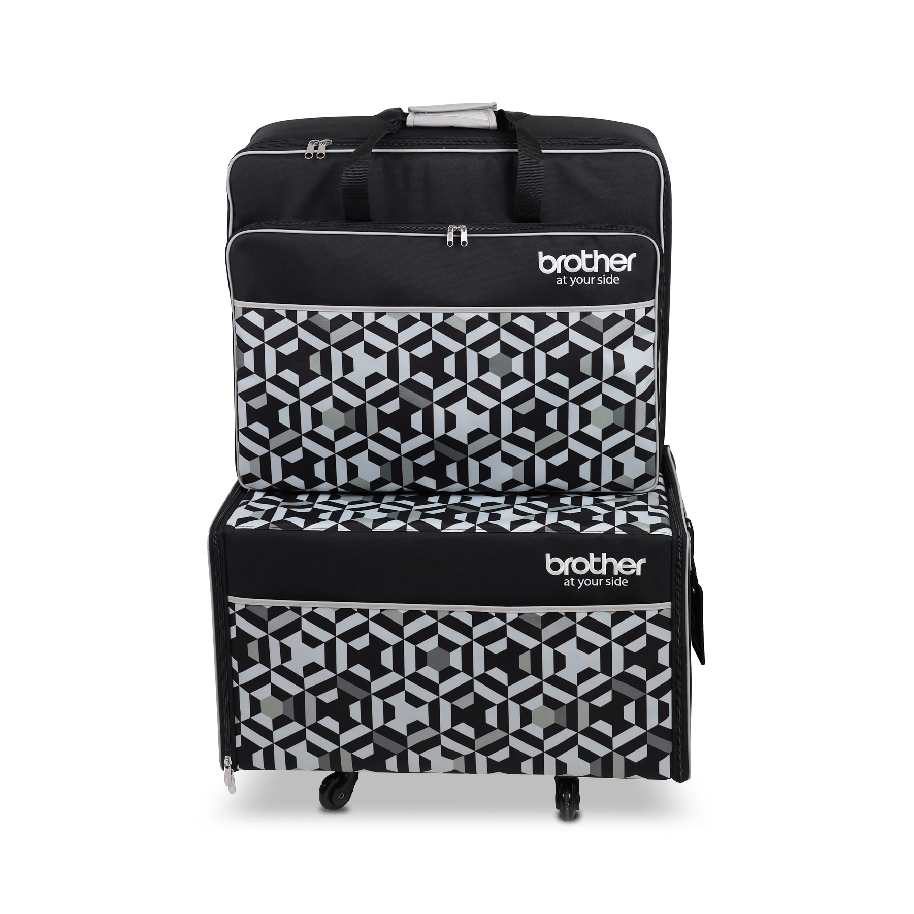 Cet ensemble de deux valises à la fois élégant et protecteur est spécialement conçu pour transporter et ranger votre machine Stellaire de Brother. Le sac à roulettes de la machine est équipé d'une poignée télescopique et de roulettes 360 qui prennent les virages comme un pro pour que vous puissiez vous déplacer facilement. Son sac d'accessoires assorti est assez grand pour ranger le bras de la machine et les deux sacs ont beaucoup de compartiments à fermeture éclair pour ranger les cerceaux de broderie, les articles de mercerie et autres fournitures.