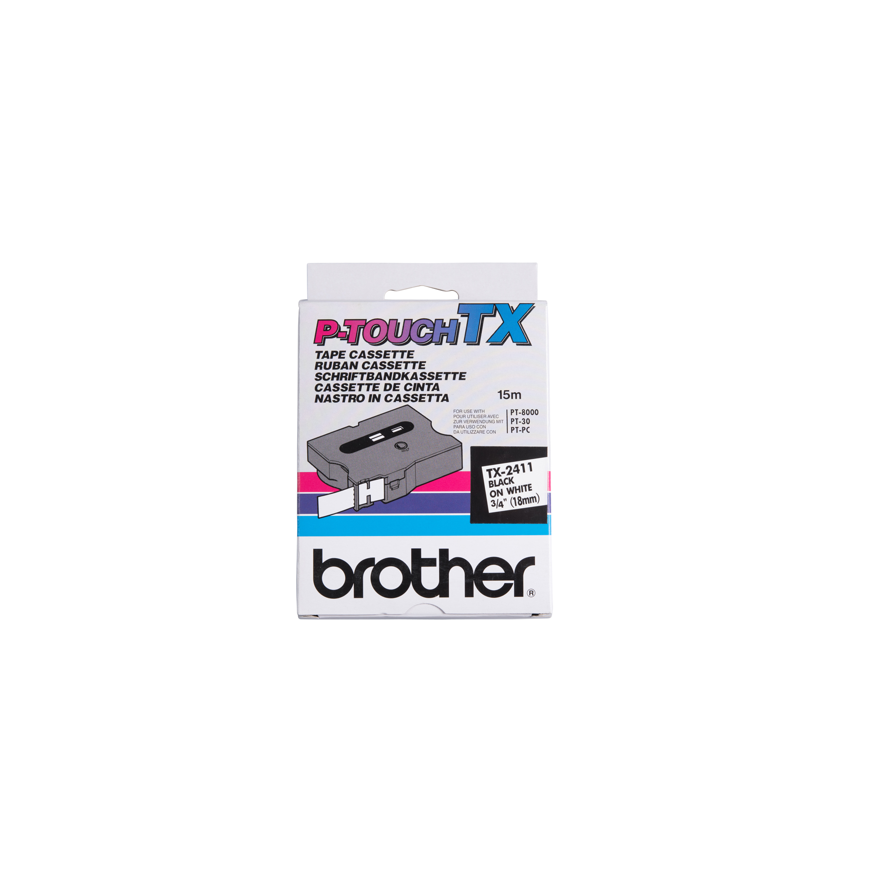 Brother TX2411 Ruban blanc avec texte noir pour P-touch 18 mm x 15 m