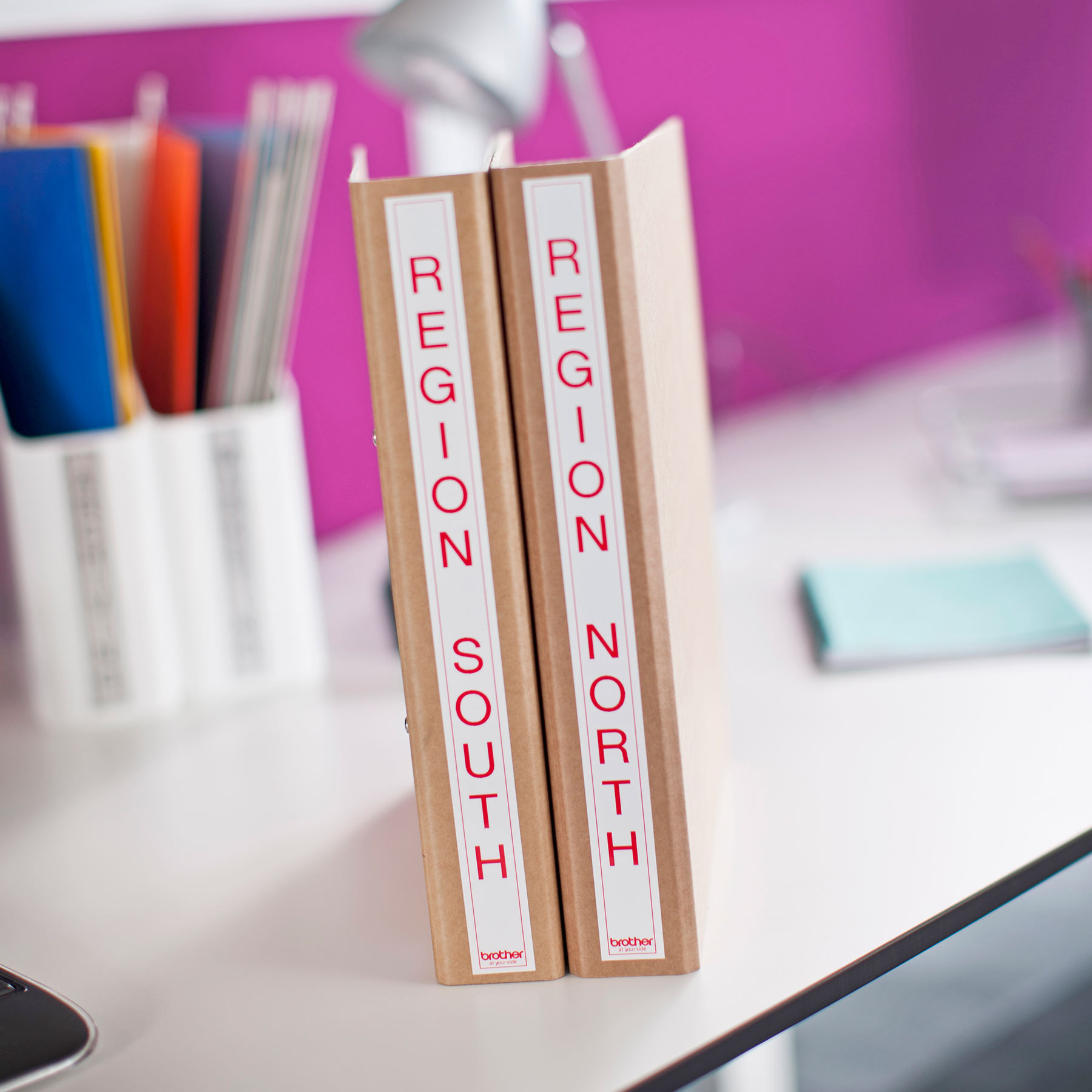 Le ruban laminé adhésif standard blanc avec texte rouge TZe-252G authentique de Brother est parfait pour les applications d'étiquetage quotidiennes à la maison, au bureau ou au travail. Utilisez-le avec votre étiqueteuse P-touch pour tout étiqueter, comme l'organisation de dossiers, les codes-barres, les clés USB, les fournitures de bureau, le contenu du garde-manger et du congélateur, les articles pour enfants, les câbles, l'équipement et bien plus encore.